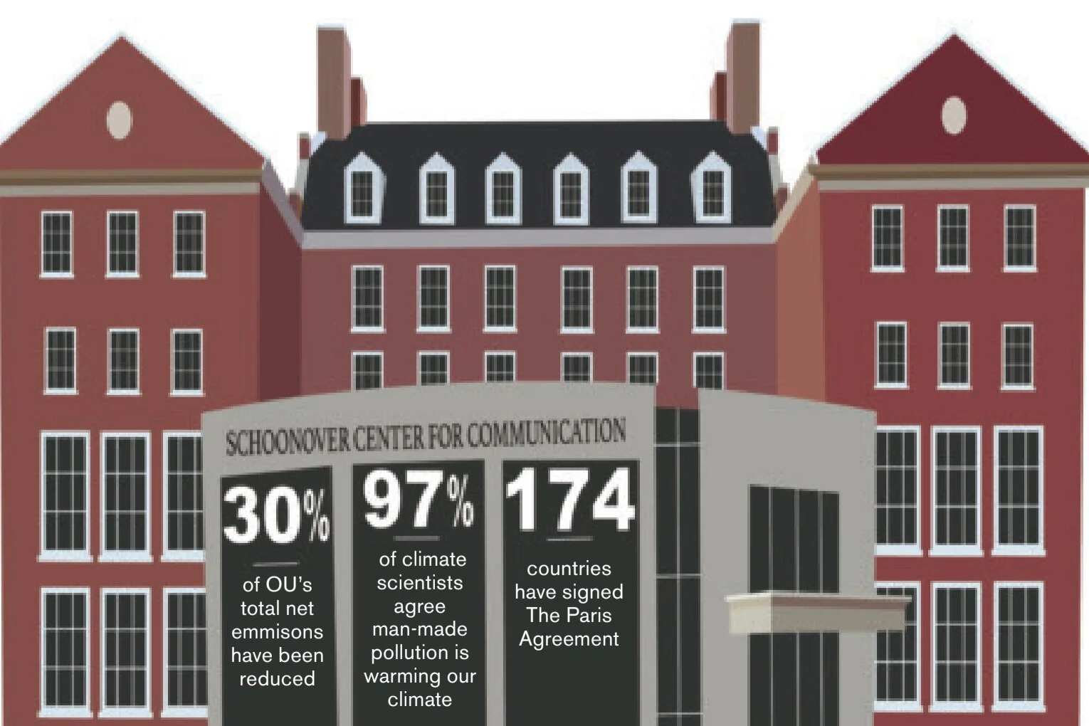 Since 2012, OU’s net emissions decreased by 30 percent and direct emissions and emissions from purchased electricity have decreased by 50 percent, as reported by the Office of Sustainability. In comparison to other universities, OU is significantly ahead in terms of campus sustainability engagement, says Elaine Goetz, the director of the Office of Sustainability.
